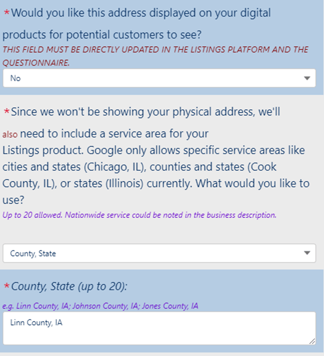 Unless the client specifies otherwise, hybrid businesses that deliver, install, offer in-home estimates etc. should still be approached with their physical location as the primary means of contact.